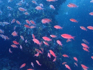 *2本目【中島】 講習でよく行くポイント💡 ここは魚がたくさん群れているのと ソフトコーラルでカラフルなのが見どころ! 観測塔があり透明度が良かったので綺麗に見えました✨