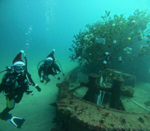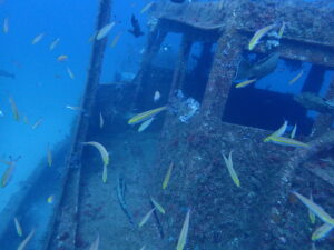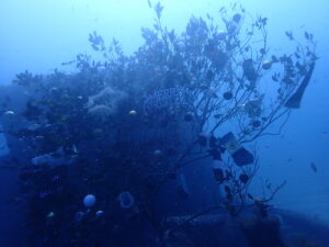 沈船の中は魚いっぱいでキラキラしていました✨